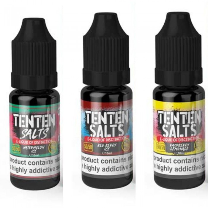 TenTen Salts follow the Same flavours as the TenTen Shortfills. Each flavour has been meticulously tested and defined until they taste exactly how they sound.. TenTen, just like 100ml these flavours and Nicotine Salts are of the highest quality and making sure nothing was left unturned.
