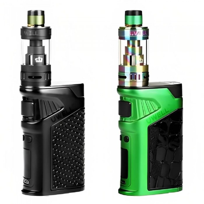 Newest uwell ironfist 200w vape kit, eight fashionable colors available, the new uwell temp control vape kit includes ironfist vape mod and crown III tank, the ironfist mod powered by dual 18650 batteries and max output 200watts, vapers can switch the working modes from variable wattage to temp control, supports resistance as low as 0.1ohm. the uwell ironfist mod features exclusive single switch, vapers no need to click fire button 5times, simply and safe.the new uwell mod design with crocodile skin, snake skin and pearl skin appearance, the most unique and compact vape mod by uwell company. multiple protection functions to ensure the vape safe and reliable. the uwell crown iii tanks can hold 5ml e juice, 0.25ohm and 0.5ohm parallel coils allow the device can fire up to 90watts, will produce a large cloud of vapor and rich flavor, bring you better vaping experience.